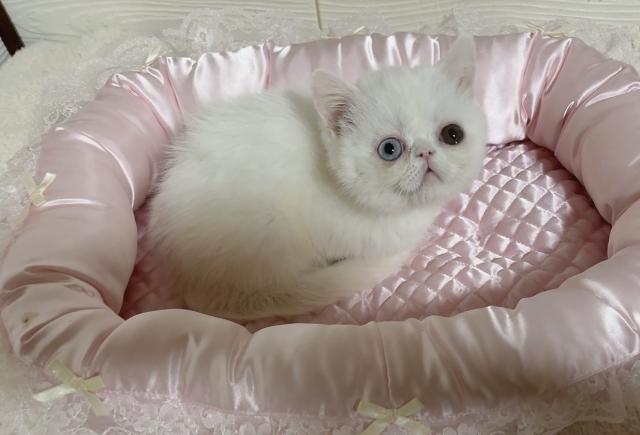 ママはブルーアイホワイトエキゾチックショートヘアー。