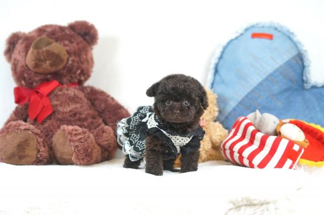チャームポイントは、濃いブラウンカラーとくりくりの大きな目👀性格はとっても甘えん坊、「こっちにきて〜」と小さな手でパタパタしながらアピールしてくれます🐾お姉ちゃん犬に対しては、すぐお腹を出し降参ポーズꉂ🤭
