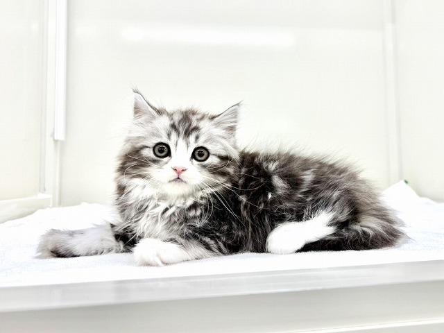 まず目に飛び込んでくるのはこのキリッと美しすぎるシルバータビー&ホワイトの被毛✨️
