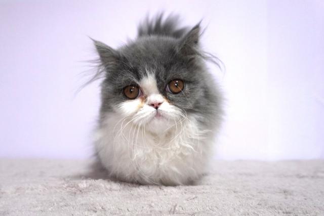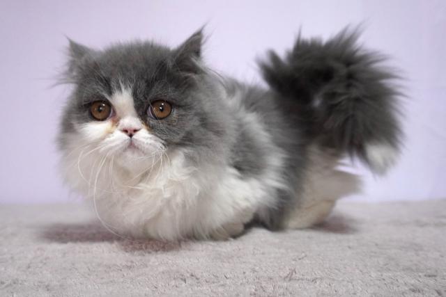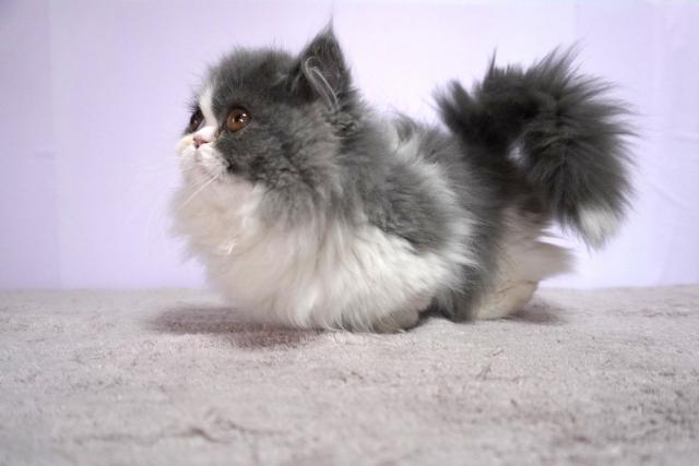 人気のブルー&ホワイト。丸いお顔のフワモフちゃん。シッポの先が白くなっているキャンドルテールの子は幸せを運ぶと言われています。