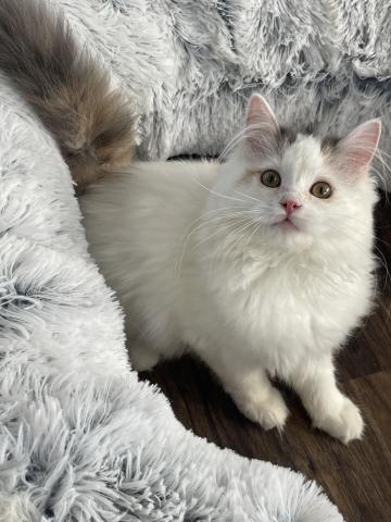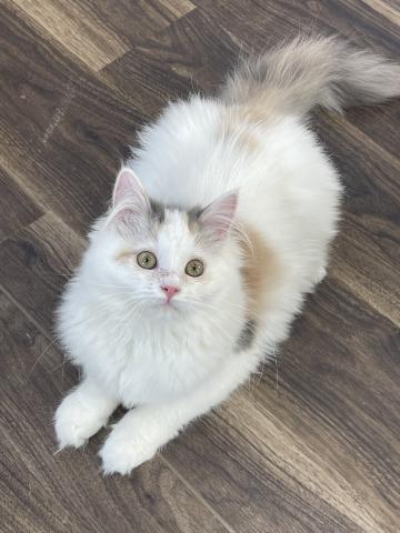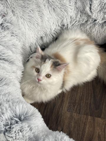 おめめがくりくりで被毛がふわっふわのとっても可愛い子になります。性格は遊び好きで猫ちゃん初心者さんにもおすすめにゃんこです。