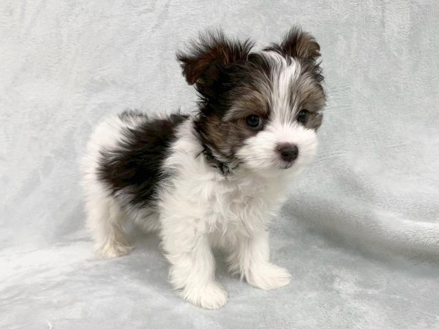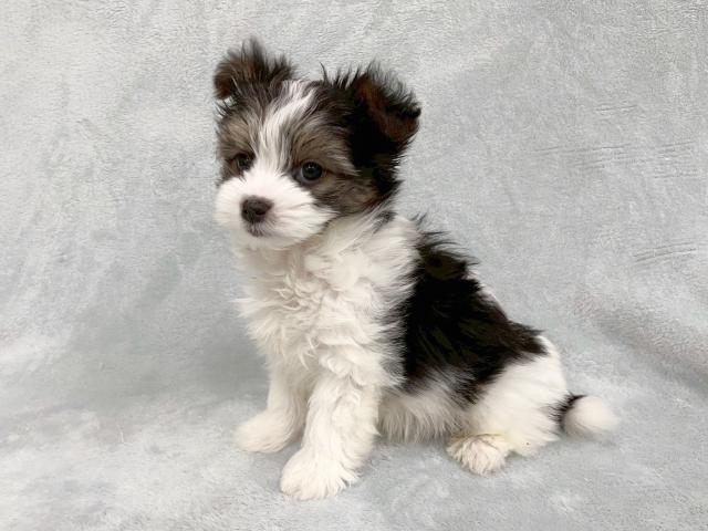 パピヨン柄とマルチーズの短いマズルを受け継いだいいとこどりのパピマル君♡
