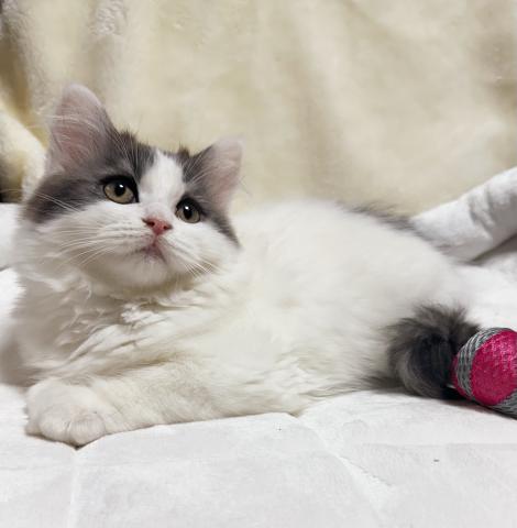 お写真では短毛に見えますが、両親長毛なので長毛になると思います。