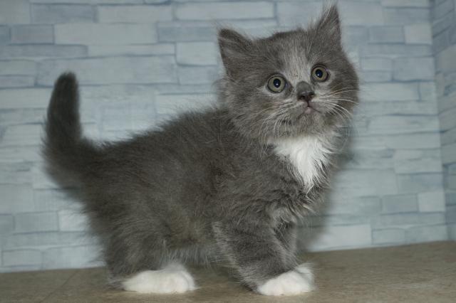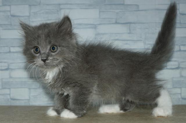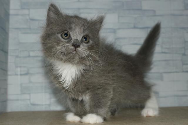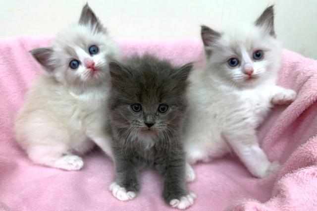 両親の毛色と体重は、(父)ブルー:4.5kg (母)シールポイントバイカラー:4.3kg