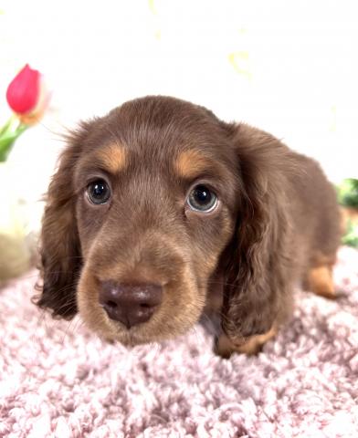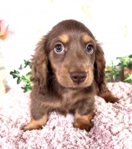 お父さん犬はミニチュアダックスロング(5.5kg,チョコダップル)お母さんはミニチュアダックスロング(5.5kg,ブラックタン)の両親から産まれた男の子です😊本日健康診断とワクチン接種行って来ました😊健康診断異常無しで元気な子👌診断後2月7日以降見学可能です。