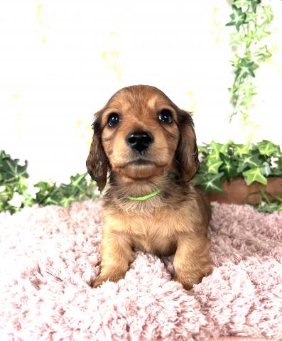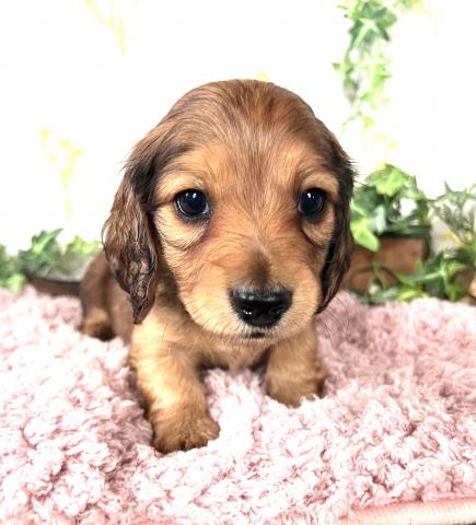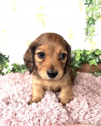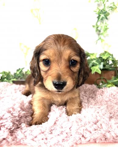 お父さん犬はミニチュアダックスロング(5kg,ゴールド)お母さんはミニチュアダックスロング(5.5kg,ブラックタン)の両親から産まれた男の子です。2月26日以降見学可能です😊是非見学に来てください💕