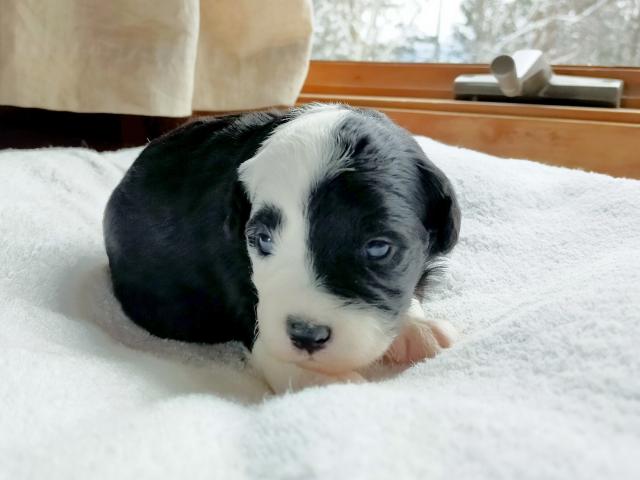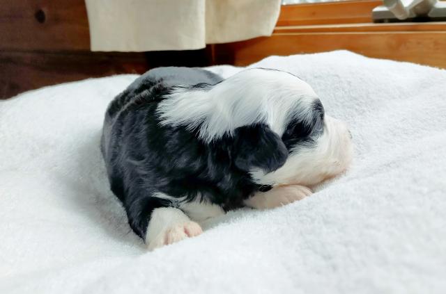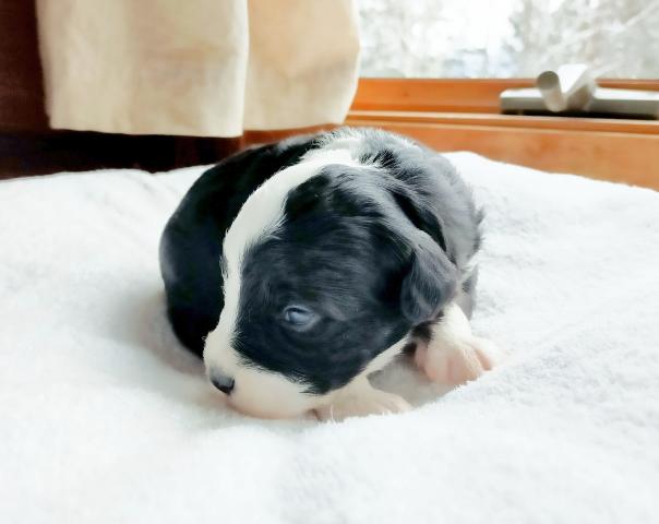 ボードゥードル:ミオ ブラック&ホワイト 右目パンダ柄で可愛い美人さん(^-^)