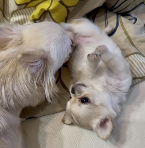 ⚪︎兄弟やママ、他の子供達や他のチワワちゃん達とも戯れあったりして、ダッシュもよろけないでできていました。