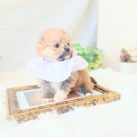 小柄でショートバックのポメラニアンらしいフォルムとサイズ。毛量も多く性格もおおらかで申し分ないお父さんです。