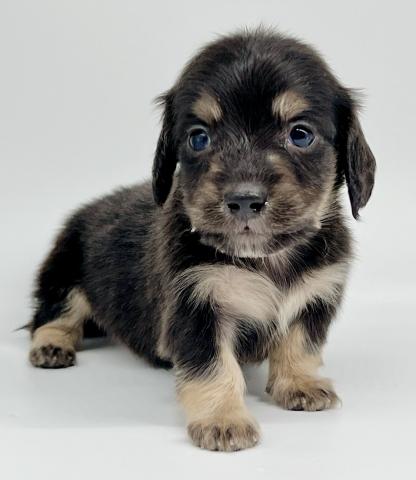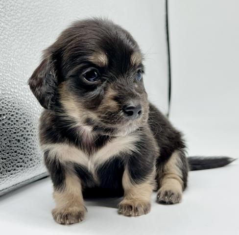 目があいて、よちよち歩きが始まったばかりのダックスの子犬です。