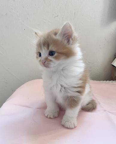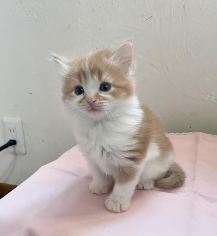 お顔に人気の八割れ柄!レッド&ホワイトのロングヘアー