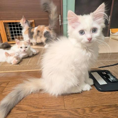 足長の女の子のご紹介です。性格はとても人懐っこくて大人しく、お客様の膝の上でくつろいだり寝たりしてくれます。カラーもブルートーティーポイントといって珍しく希少性があります。瞳がブルーで美しく、またお顔つきも美人さんですので非の打ち所のない良い子です。当日のお引渡しが可能です。