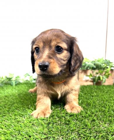 お父さん犬はミニチュアダックスロング(5kg,ゴールド)お母さんはミニチュアダックスロング(5.5kg,ブラックタン)の両親から産まれた子デス💕 健康診断異常無し。【※診断内容:口腔・眼球(視診)・耳(耳道内)・鼻・心臓(聴診)・皮膚・膝蓋骨脱臼(触診)・臍ヘルニア・ソケイヘルニア・その他】1回目のワクチン接種済み😊是非見学に来てくださーい💕