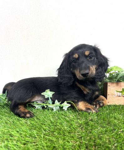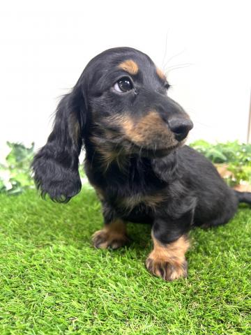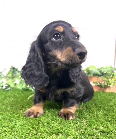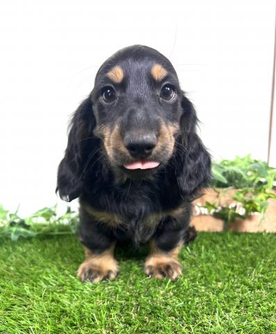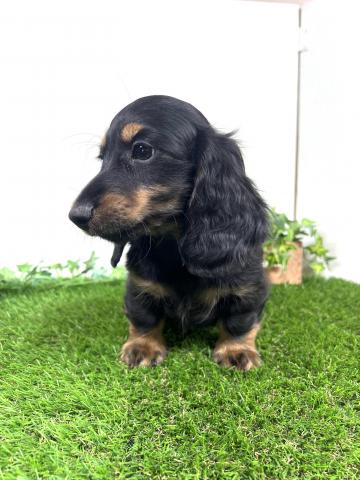 お父さん犬はミニチュアダックスロング(5kg,チョコダップル)お母さんはミニチュアダックスロング(5.5kg,ブラックタン)の両親から産まれた子デス💕 健康診断異常無し。【※診断内容:口腔・眼球(視診)・耳(耳道内)・鼻・心臓(聴診)・皮膚・膝蓋骨脱臼(触診)・臍ヘルニア・ソケイヘルニア・その他】1回目のワクチン接種済み😊是非見学に来てくださーい💕