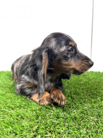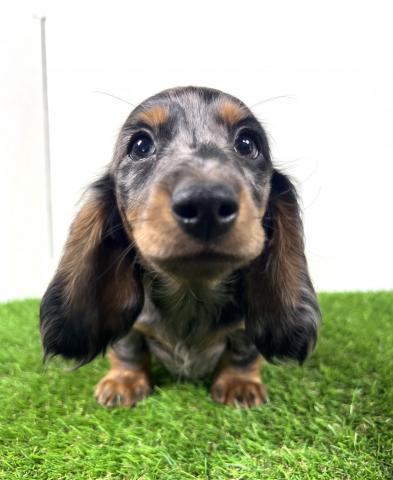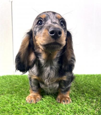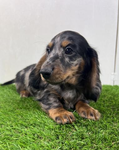 お父さん犬はミニチュアダックスロング(5kg,チョコダップル)お母さんはミニチュアダックスロング(5.5kg,ブラックタン)の両親から産まれた子デス💕 健康診断異常無し。【※診断内容:口腔・眼球(視診)・耳(耳道内)・鼻・心臓(聴診)・皮膚・膝蓋骨脱臼(触診)・臍ヘルニア・ソケイヘルニア・その他】1回目のワクチン接種済み😊是非見学に来てくださーい💕