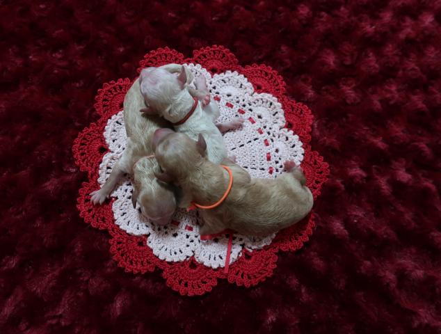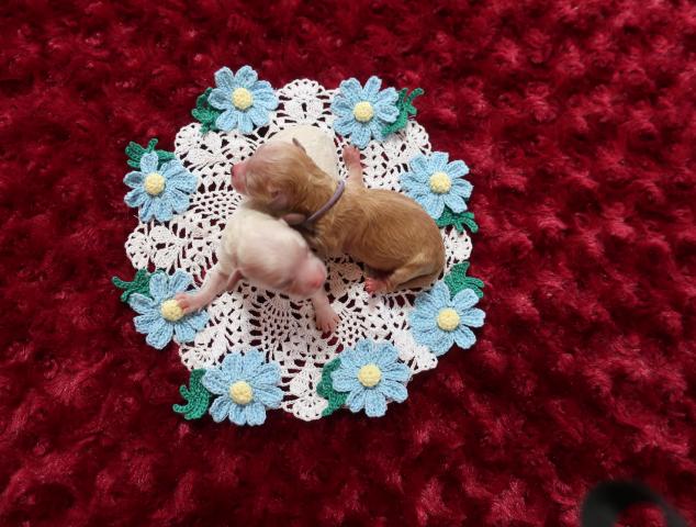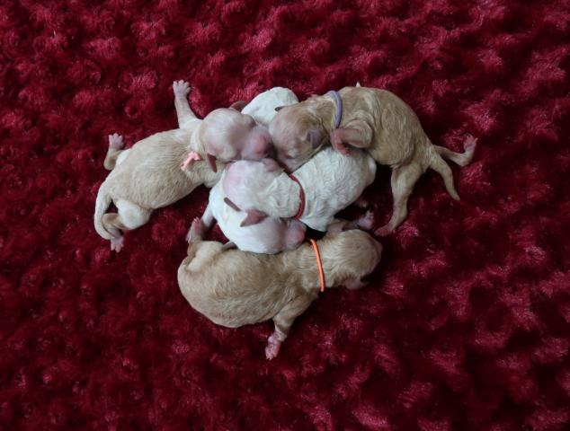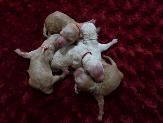トイプードルティーカッププードル???3月24日誕生の5姉弟メス3匹オス2匹毛色はホワイト・クリーム・アプリ・レッド?