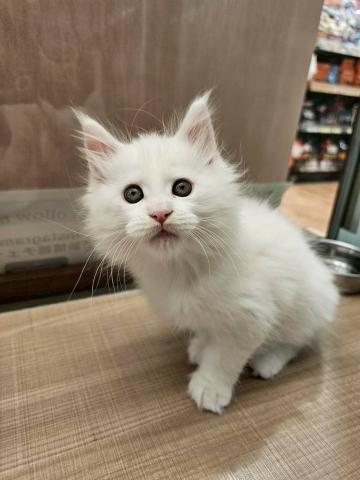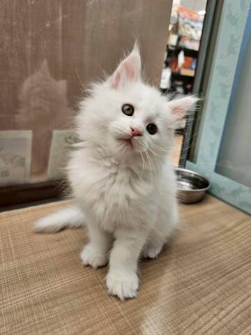 コメント:とっても美しい真っ白なメインクーンちゃんが仲間入り🎶なんとお父さんがチャンピオンです‼️