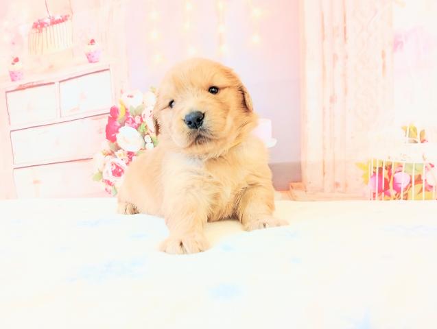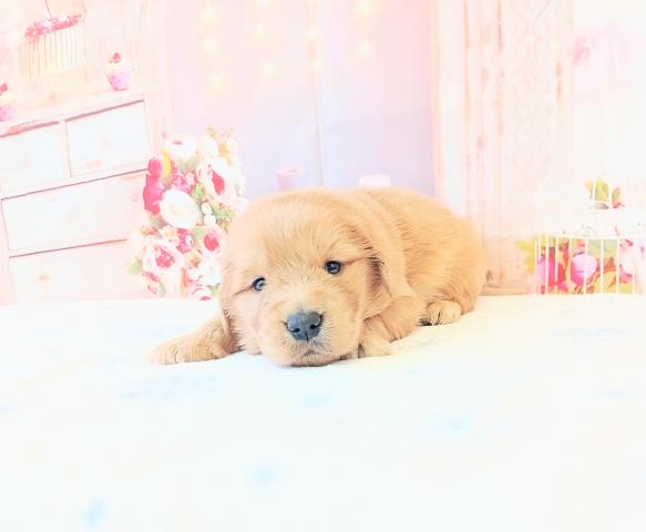 お父さん→祖父、祖母、曽祖父、曾祖母チャンピオンと代々優良血統✨体重35キロ、マズルも太くデコも張っているゴリゴリのゴールデンです。性格はいつまでたっても甘えん坊😊