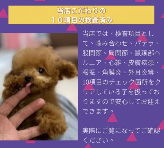 噛み合わせ、パテラ、股関節、肩関節、鼠蹊部ヘルニア、心雑、皮膚疾患、眼振、角膜炎、外耳炎等、10項目のチェック箇所をクリアしている子を扱っておりますので安心してお迎えできます。
