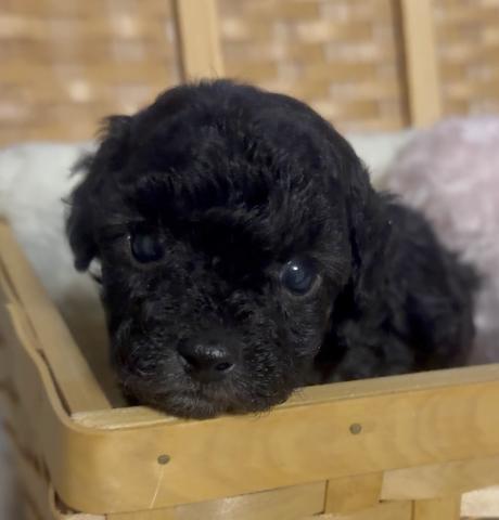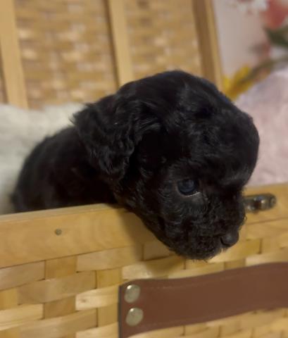 つぶらな瞳でじっと見つめてくる、愛らしいトイプードルの男の子。