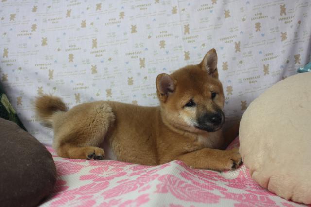 玩具で遊んでると思ったらスヤスヤ眠りこける、柴特有のしっかりタイプな性格な女の子です。