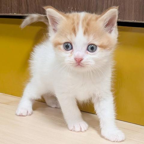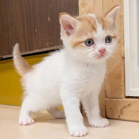 足長の男の子のご紹介です。5匹で生まれました。お母さんの愛情をたっぷり受けて丸々と育っております。まん丸で鼻ぺちゃなところがとてもかわいいです。少し困り顔のところがチャームポイントです。兄妹や他の子猫達と仲良く元気に遊んでいます。ワクチンを打ってからのお引渡しとなります。