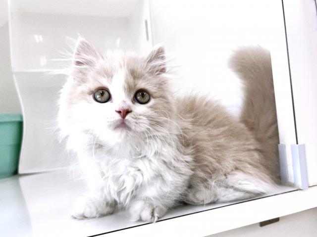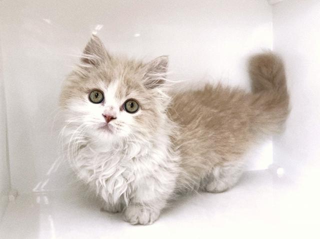 優しいクリームカラーのハチ割れ模様がキュート♪