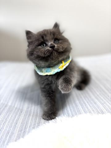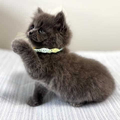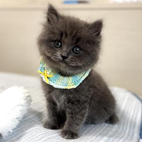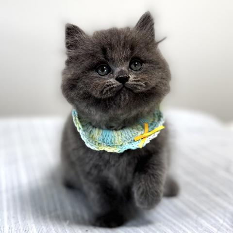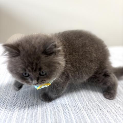 血統書はブリティッシュロングヘアーですが、現在はロングほど長すぎない、扱いやすいミディアム寄りの長さです。これからの成長でさらにふんわりとした被毛になっていくと思います。