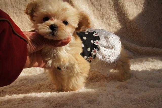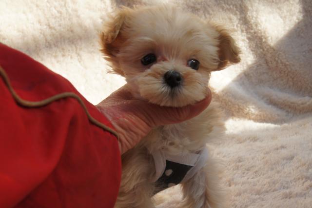 マルプー独特の愛らしいお顔です。両親共可愛い子ですので、この子も両親に似て可愛い子です。テーカップサイズで、手 足短いドワーフタイプです。