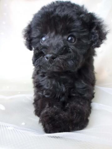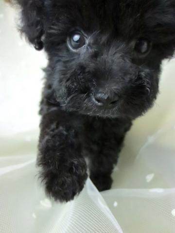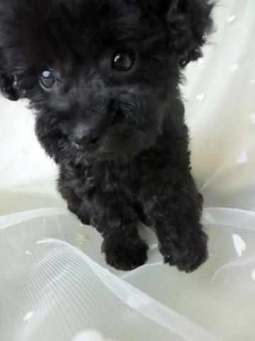 ミスカラー無し小さな小さな真っ黒ブラックの女の子です!お目々も大きく可愛いですよ!両親ティーカッププードルで小さいサイズですがご飯もよく食べ元気にすごしています!