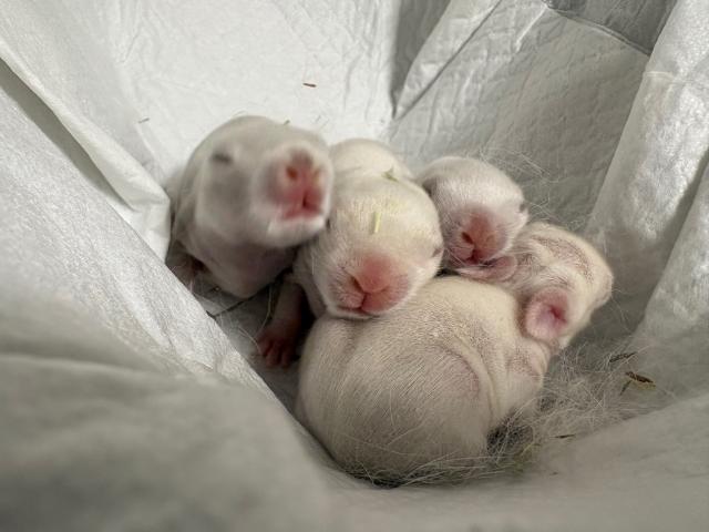 鼻先にも少しずつ色が出てきており、ママ似のクリーム系フロスティが2羽、