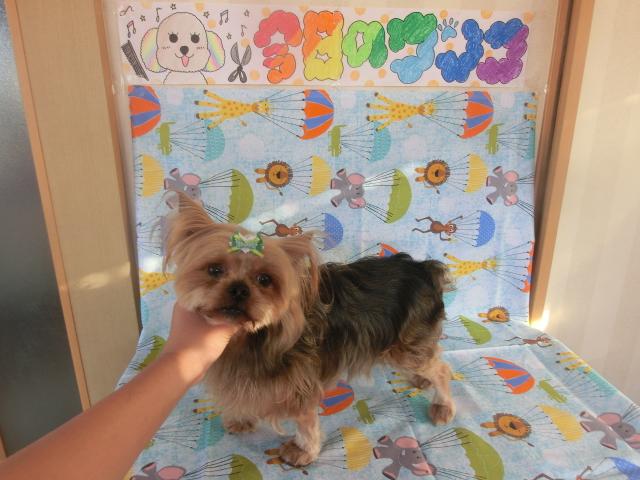 ヨーキーは被毛が長いので、こういう感じのリボンつけが