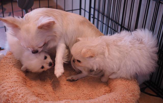 現在は、お母さんと兄弟犬、そしてお友達と一緒に生活しています。